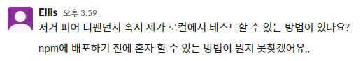 react-wai๋ฅผ ๋ณด๋ฉด ์ด๊ฒ ๋ฐฐํฌํ๋ฉด ๋ฌธ์ ์๋? ๋ผ๊ณ ํ ์คํธํ๊ธฐ ์ํด package.json์์ ๋ช ๊ฐ์ง ๋ณ๊ฒฝ์ฌํญ๋ง ์์ ํด์ ๋ค์ ์ฌ๋ฐฐํฌ๋ฅผ ํ ์ ์ด ์๋ค. ์ฌ์ค ์ด๋ฐ ์ค์ ๋ง ๊ฑด๋๋ฆฌ๋ ๊ฒ์ publish๊ฐ ๋์ด์๋ ์๋๋ค๊ณ ์๊ฐ์ด ๋์์ง๋ง, ๋ฐฉ๋ฒ์ ๋ชฐ๋ผ์ ์ ์ด๋์์๋ค. ์ต๊ทผ์ Ellis๋๊ณผ npm ๋ฐฐํฌ์ ๋ก์ปฌ ํ ์คํธ์ ๋ํ ์ด์ผ๊ธฐ๋ฅผ ๋ฃ๊ณ ์ด๋ฅผ ํด๊ฒฐํ๊ธฐ๋ก ํ๋ค.